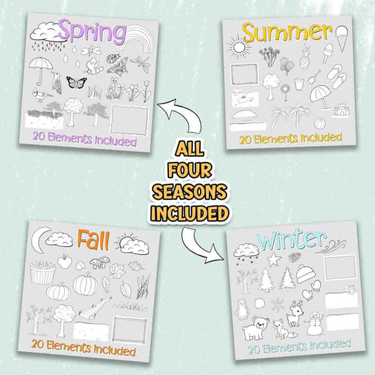 Four Seasons - Spring, Summer, Fall, Winter - Colorful Scene Creator Set