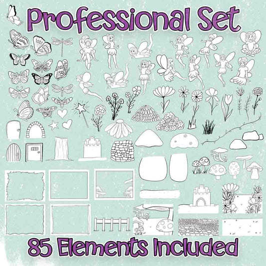 Whimsical Winter Coloring Page Scene Creator Bundle