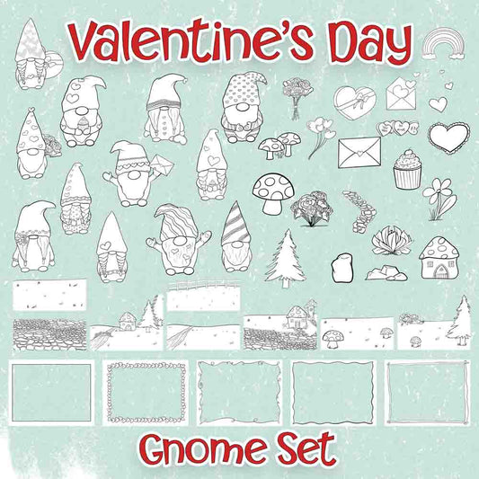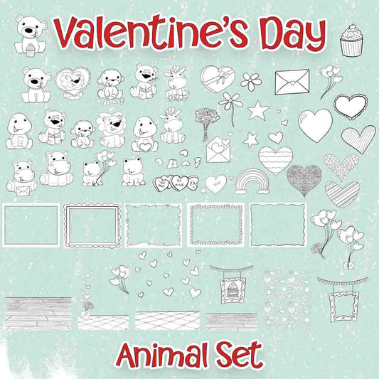 Valentine's Day Animals: Coloring Page Scene Creator Set