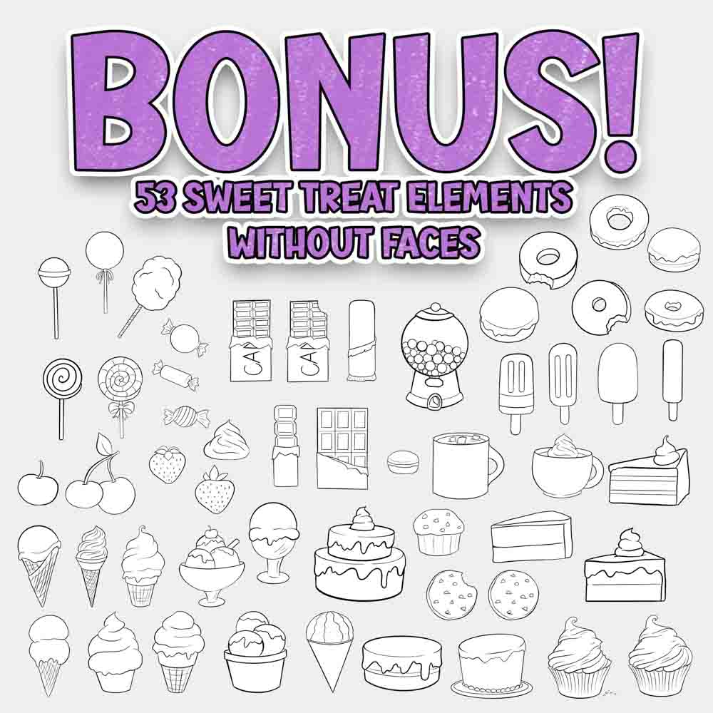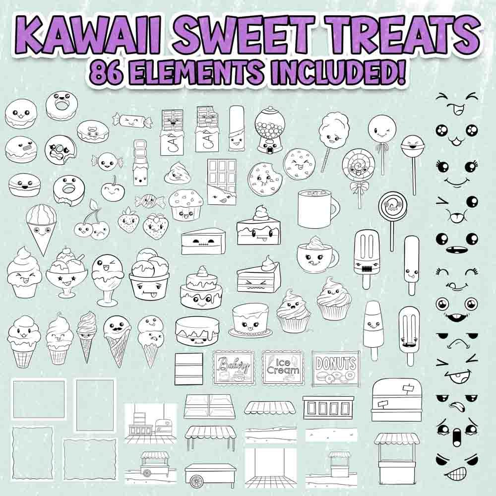 You’ll have instant access to a collection of 86 ready-to-use, adorable elements that can be easily dragged and dropped into customized coloring pages so you can create professional-looking sweet treat scenes that your customers will love.