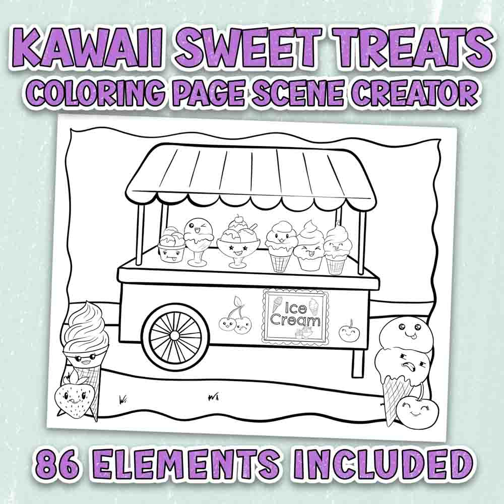Make your shop a little sweeter with the Kawaii Sweet Treats Coloring Page Scene Creator.